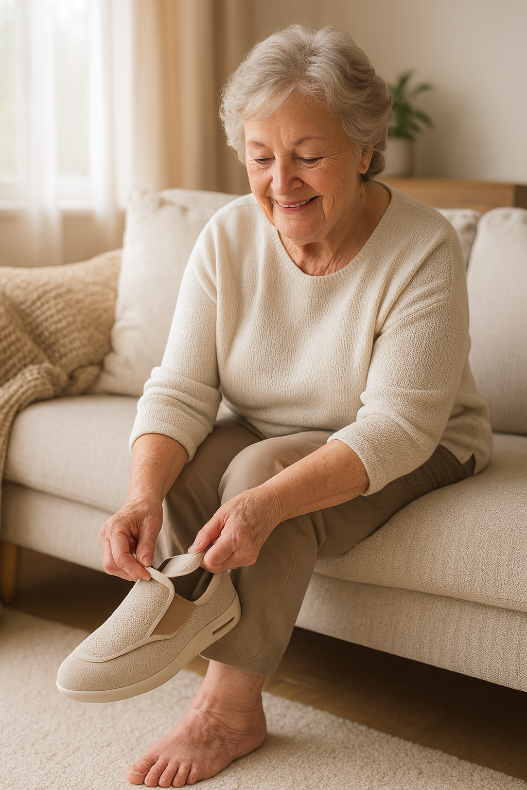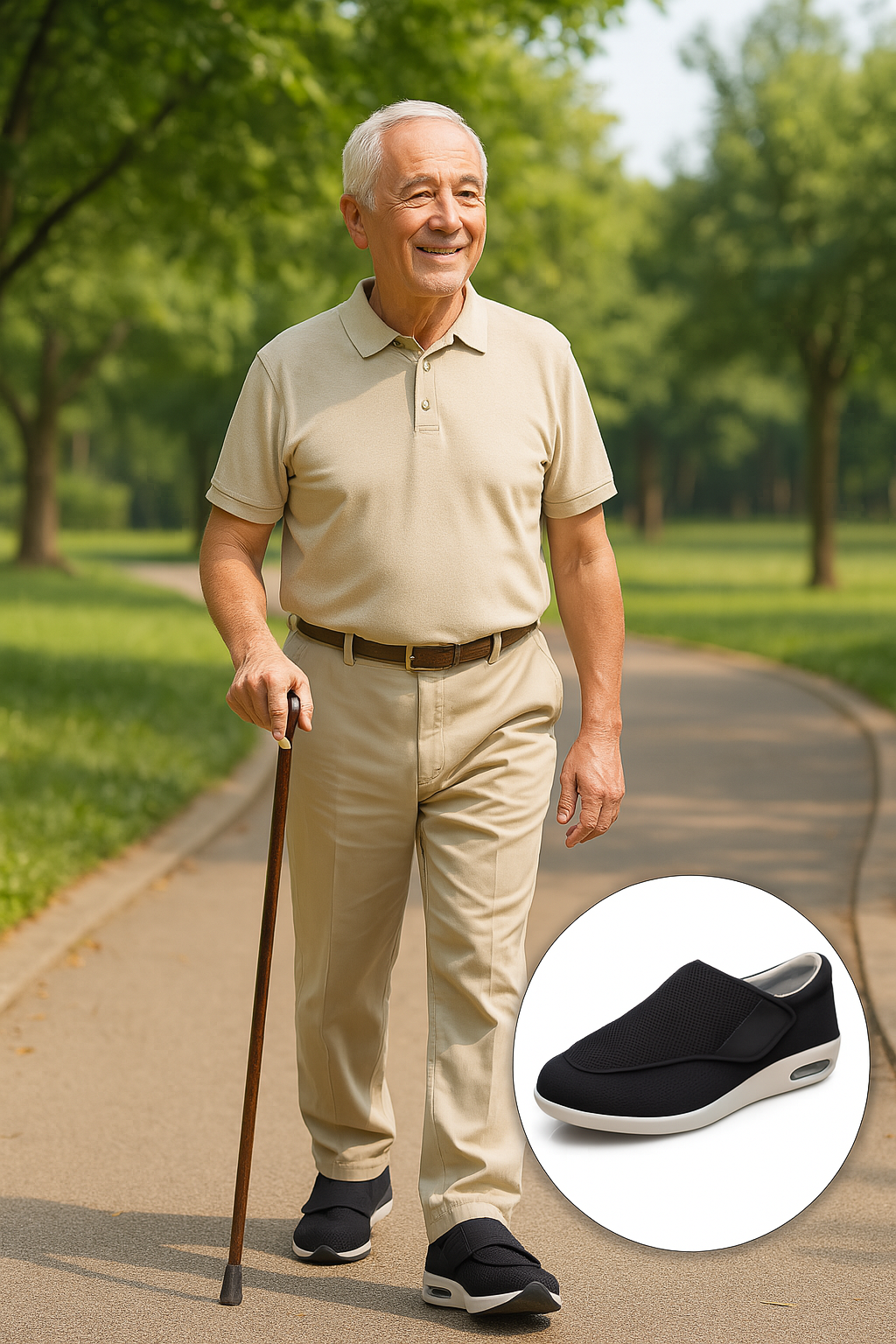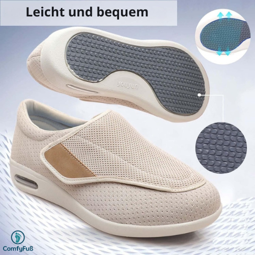 ComfyFuẞ™ wird von Fußpflege-Experten empfohlen dank der durchdachten Kombination aus Komfort, Unterstützung und Anpassungsfähigkeit. Das Design berücksichtigt Beschwerden wie Neuropathie, Diabetes, Arthritis und chronische Schwellungen. Die breite Passform, der verstellbare Verschluss und das druckfreie Innenfutter machen diesen Schuh zur zuverlässigen Wahl für alle, die Mobilität, Schmerzlinderung und täglichen Komfort schätzen. Entwickelt mit medizinischem Know-how – für Menschen gemacht.